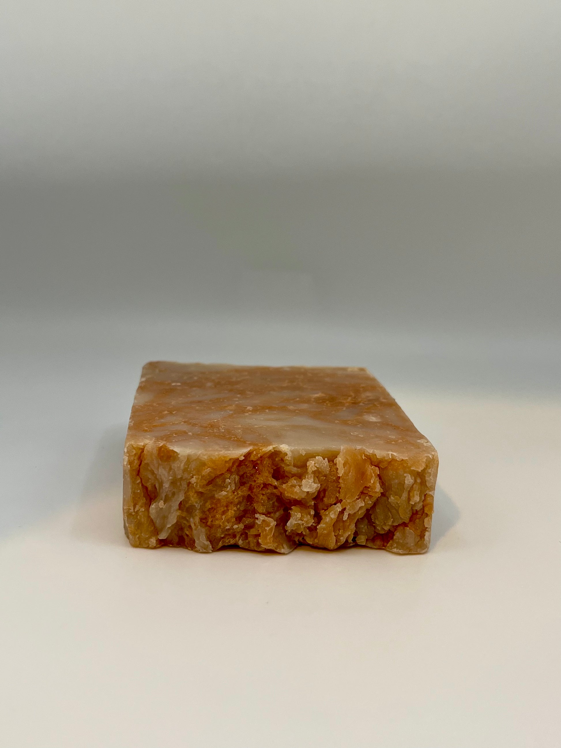 Our Homemade Soap hot processed soap is made with a rich blend of oils and butters. This soap is designed to deeply moisturize your skin while providing a luxurious, creamy lather. Each bar delivers a gentle yet effective cleanse that leaves your skin feeling soft, refreshed, and nourished—never dry or tight. Infused with a delightful amber fragrance, that smells amazing. This soap combines bubbly lather, clean formula ingredients, and skin-loving hydration in every bar.